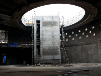 A 5-storeyed frame structure in RCC with a total area of 17500 sqm. The structure is supported on 39 cores of 4 columns each. The cores are on a chequered plan with centre to centre distance of 16.5 meters. The building includes an auditorium. The structure is intended for the exhibition of scientific models and displays for the National Council of Science Museum.